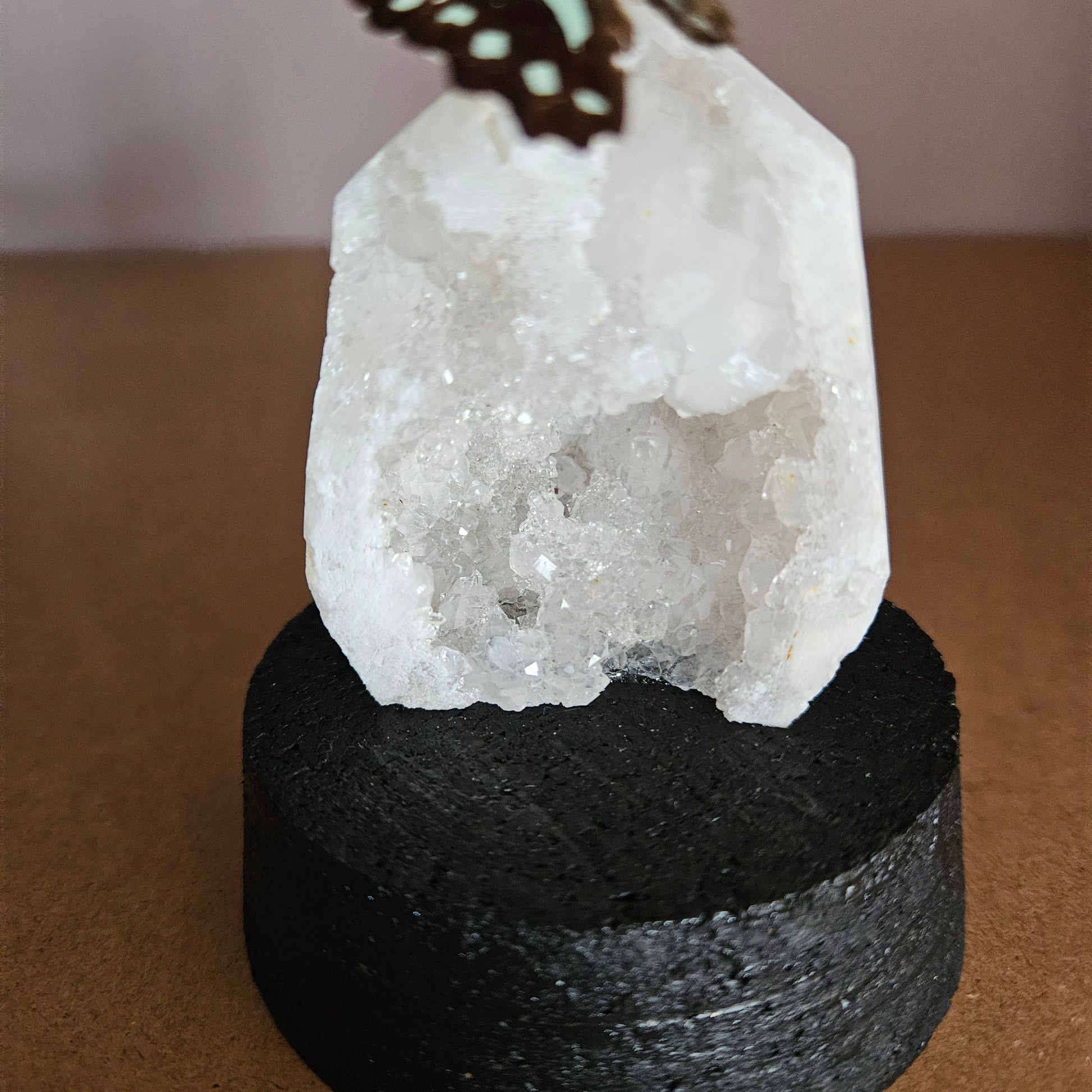 Vlinderstolp: Bergkristal geode met Graphium sarpedon