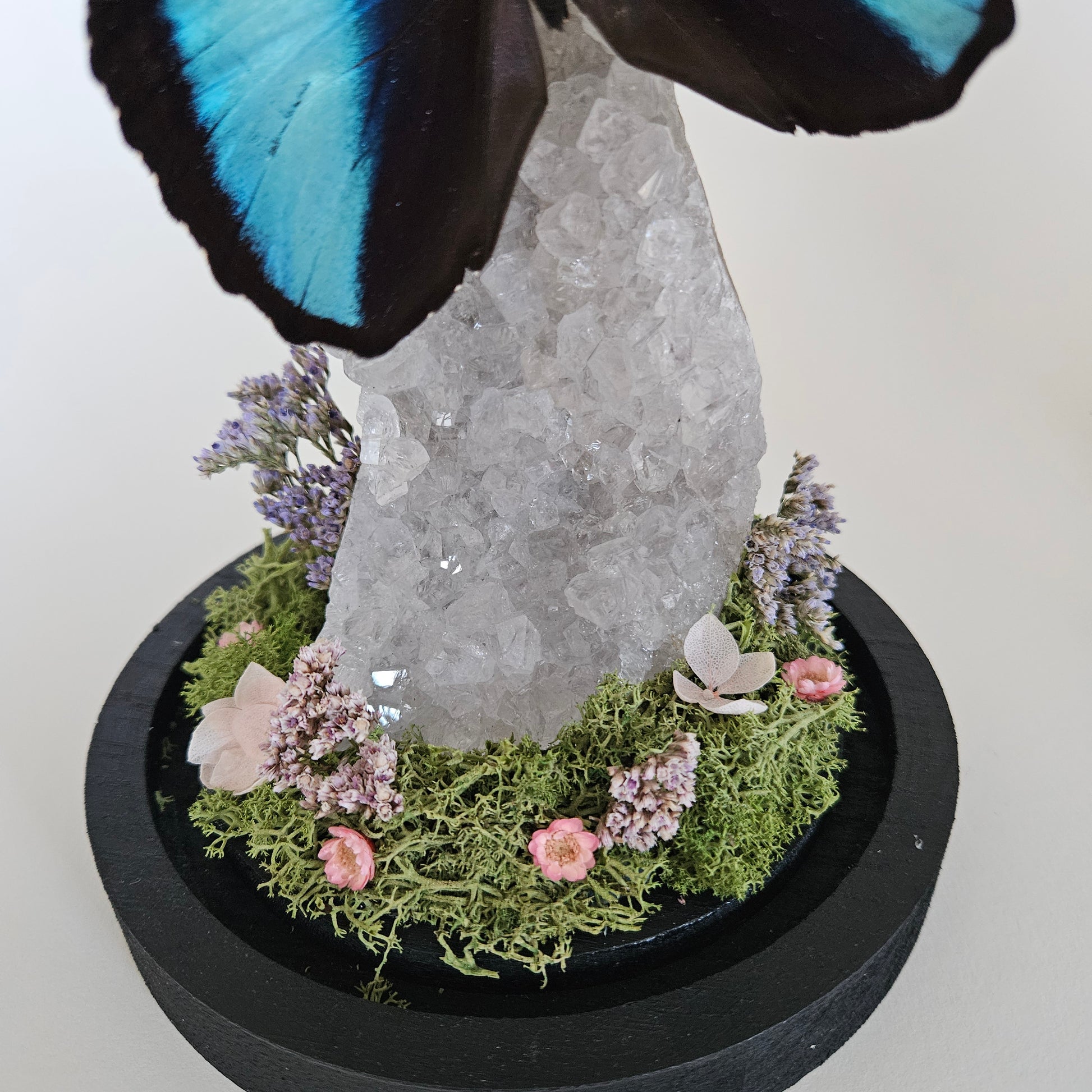 Deze prachtige vlinderstolp brengt de schoonheid van de natuur op een bijzondere manier in huis. Met een zorgvuldig geprepareerde vlinder en natuurlijke elementen zoals bloemen en takjes, is deze stolp niet alleen een stijlvol decoratiestuk, maar soms ook een persoonlijk aandenken. Sommige klanten kiezen ervoor om deze stolpen te gebruiken als herdenkingsstolp, een liefdevolle manier om een dierbare te herinneren.